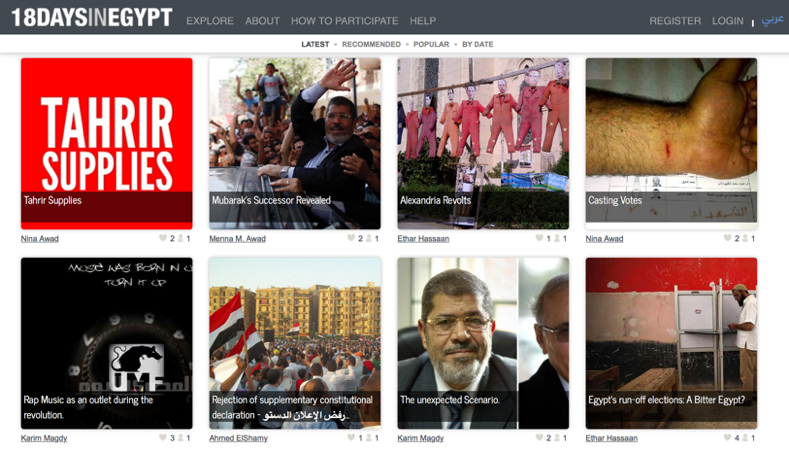 16. Elayat, Yasmin, and Jigar Mehta. 18 Days in Egypt. 2011, www.18daysinegypt.com. Accessed 2 May 2018.